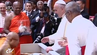 Discours du Pape François Rencontre interreligieuse et œœcuménique Colombo, Bandaranaike Memorial, 13 janvier 2015 Chers amis, je suis reconnaissant de l’’occasion qui m’’est donnée de participer à cette rencontre, qui réunit ensemble – parmi d’autres – les quatre communautés religieuses les plus grandes qui font partie intégrante de la vie du Sri Lanka : Bouddhisme, ...lire la suite