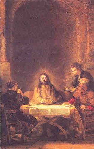 Ce repas est le moment d’une Révélation. A Emmaüs, pendant que le pain est rompu, les yeux des compagnons s’ouvrent et ils reconnaissent le Seigneur : Il est vraiment ressuscité. Désormais, la victoire de l’amour contre toutes les tristesses de ce monde est assurée. Mais le Christ disparaît ; ses disciples sont passés de la désillusion à l’enthousiasme. Aussitôt, ils partent sur la route comme des messagers d’espérance.