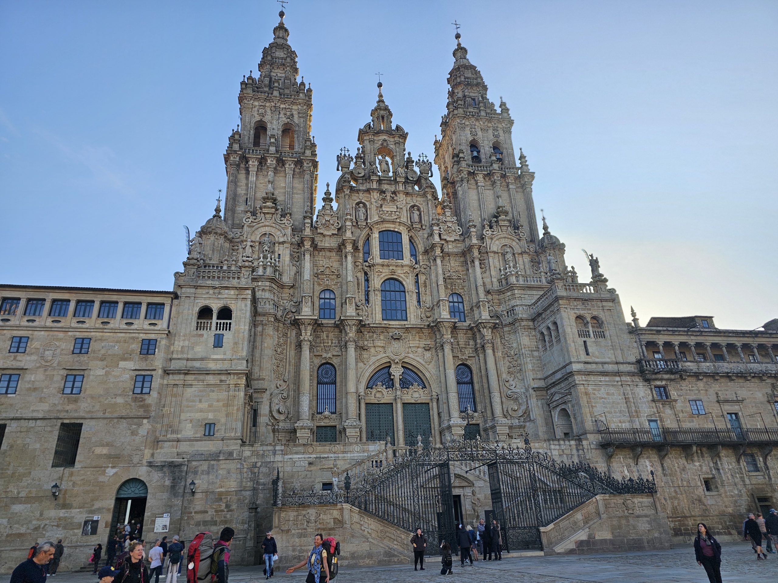 Quoique je voulais faire le vrai chemin de Compostelle (marche à pieds d’un chemin complet), ce qui n’était pas une option dans ce pèlerinage ; mais faire 5 km à pied de la colline de Montjoie à Saint Jacques nous donne une version courte de ce que vit un pèlerin durant sa marche. Et je ne veux surtout pas manquer ça ! Quelle belle joie de suivre les coquilles qui guident les pèlerins sur les chemins qui se rendent à Saint-Jacques. Arrivée devant la cathédrale : je ne pouvais pas retenir mes larmes. Un autre moment fort qui a suivi la messe en espagnol où pèlerins du monde entier étaient rassemblés à la cathédrale ; c’est l’animation de l’encensoir le plus grand au monde : le Botafumeiro, qui ne fonctionne pas à tous les jours et pour notre bénédiction ce jour-là, il a été mis en action.